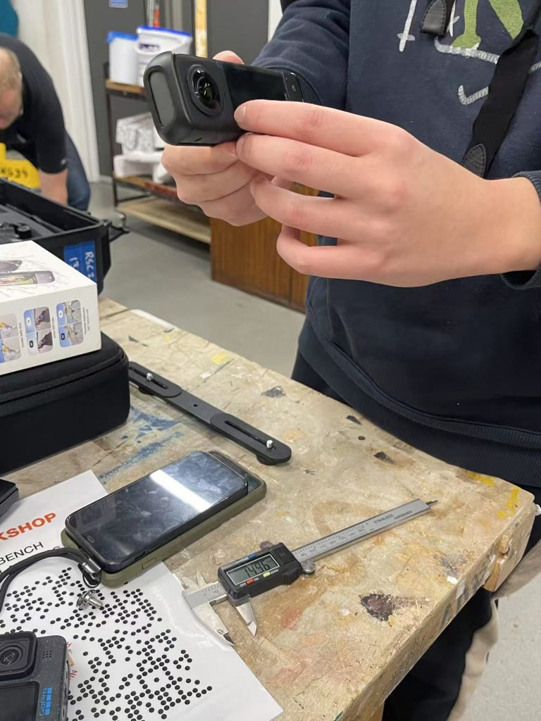 We decided to use two Insta360 cameras to shoot simultaneously in order to create a 3D effect. We measured the data ourselves, built the model in Rhino, and printed the camera mount at the 3D workshop.